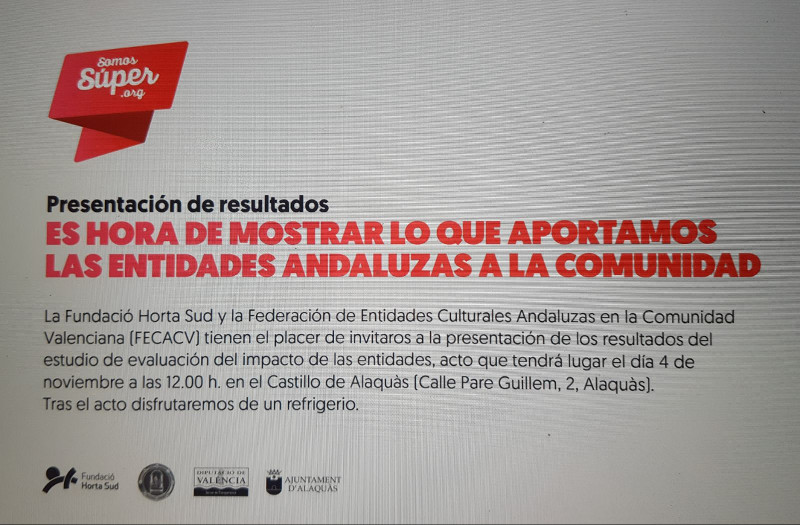 Bajo este lema se ha realizado un trabajo conjuntamente por la Federación de Entidades Culturales Andaluzas en la Comunidad Valenciana (FECACV) y la Fundación Horta Sur.